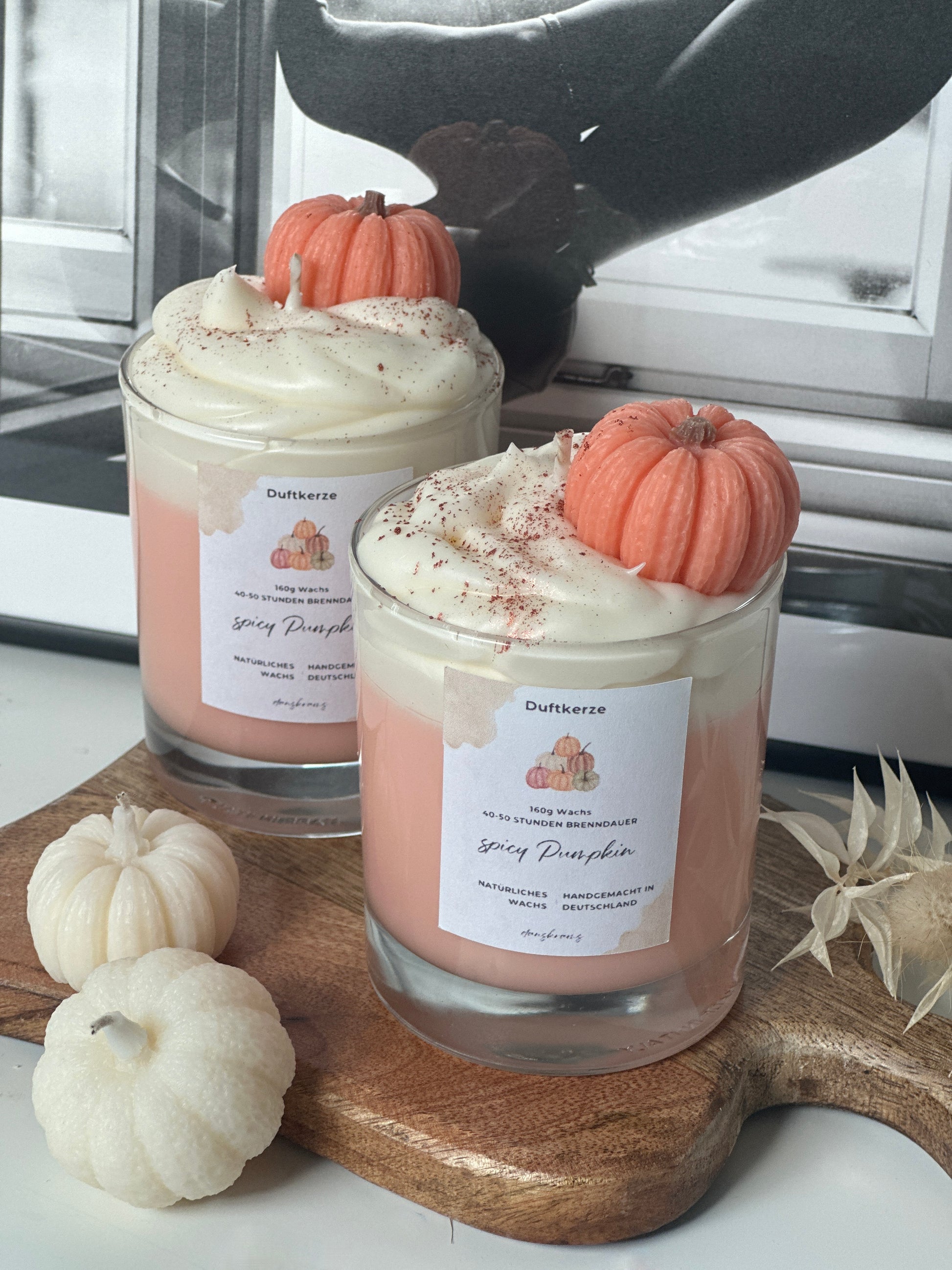Unsere handgefertigte Duftkerze bringt dir den unverwechselbaren Pumpkin-Spice-Zauber nach Hause. Schon beim Anzünden entfaltet sich ein harmonisches Zusammenspiel aus spritziger Orange und frischer Zitrone, das sofort für eine fruchtige Leichtigkeit sorgt. Abgerundet wird der Duft durch eine warme, würzige Basis aus Ingwer und Nelke, die an gemütliche Herbsttage erinnert. Vanille und Karamell schenken der Komposition eine cremig-süße Note – wie ein frisch zubereiteter Pumpkin Spice Latte im Lieblingscafé.
