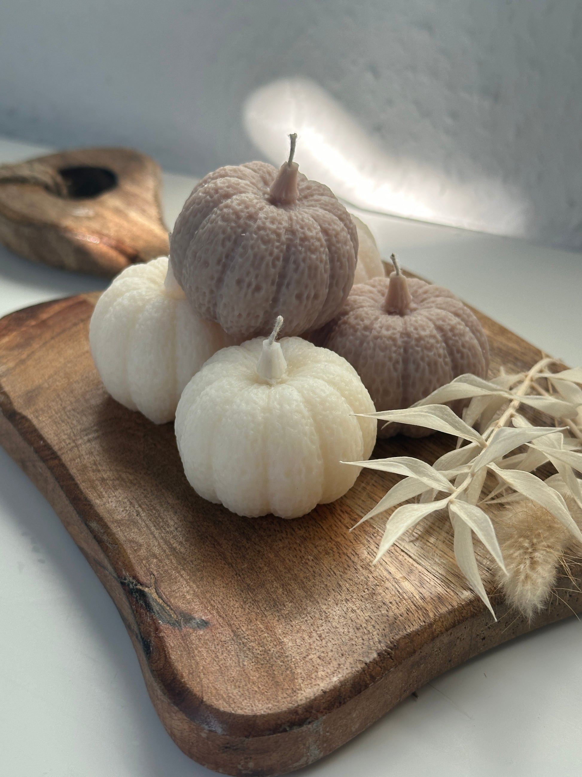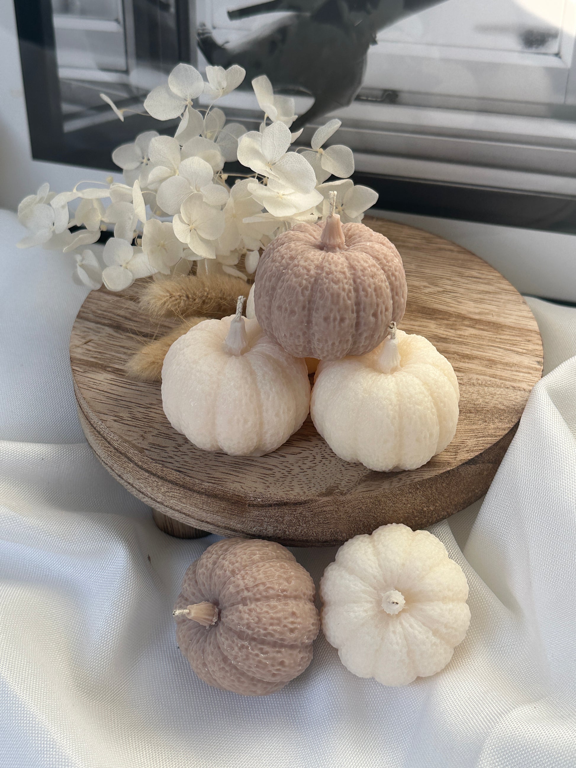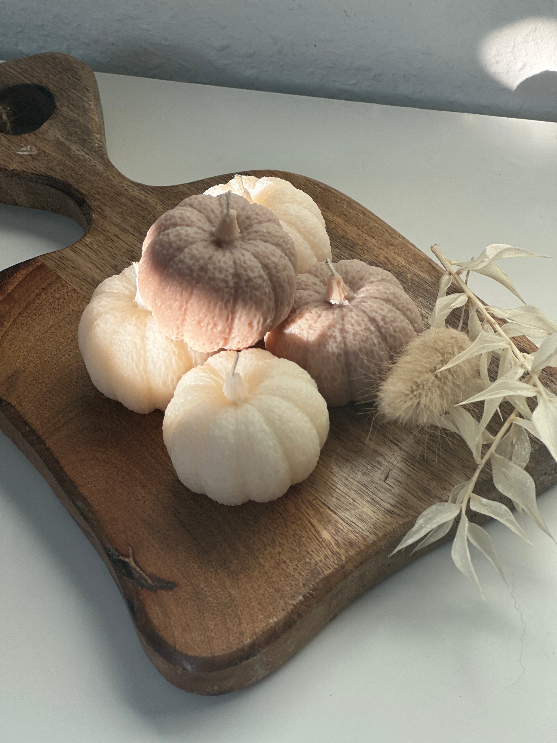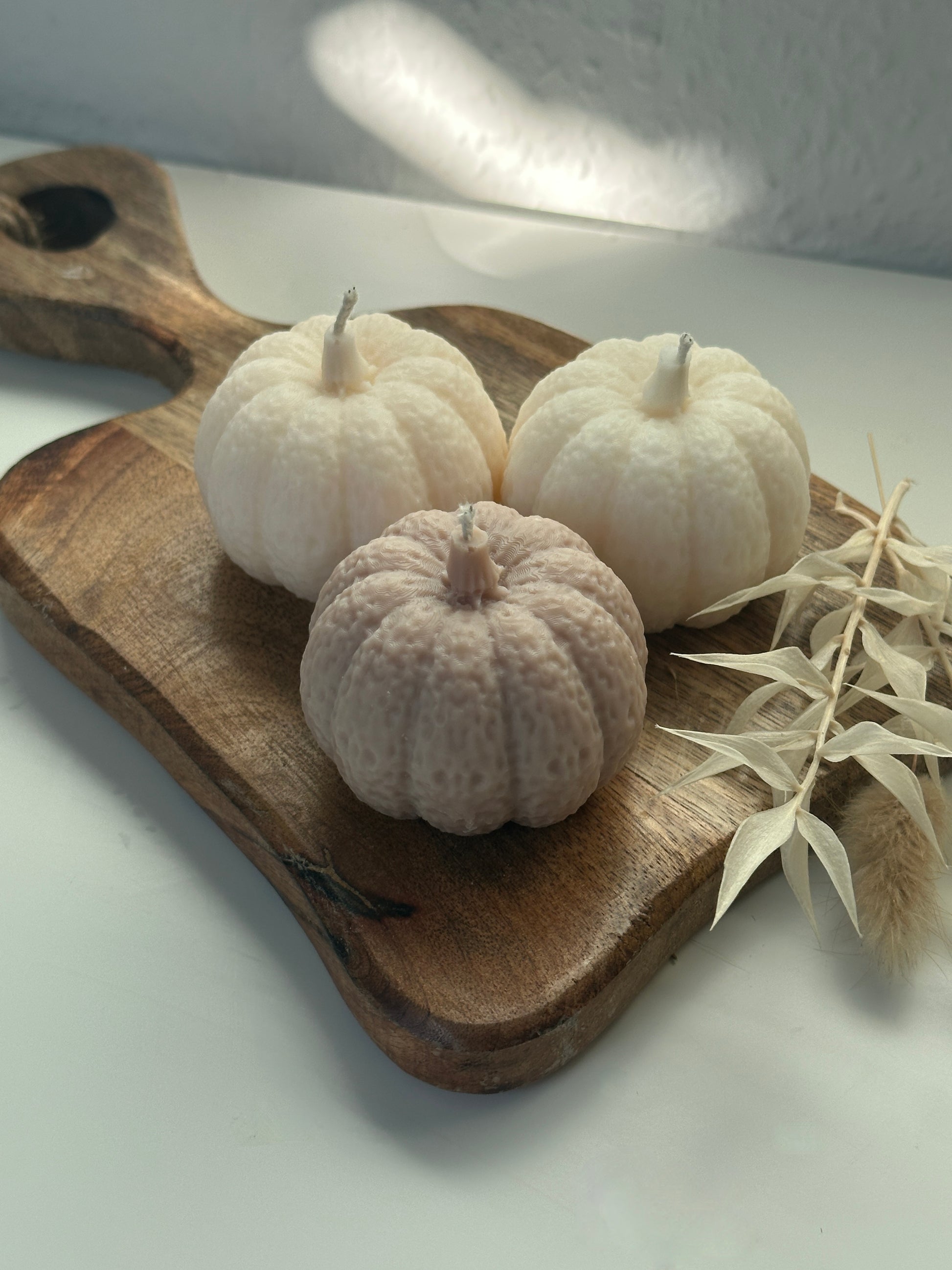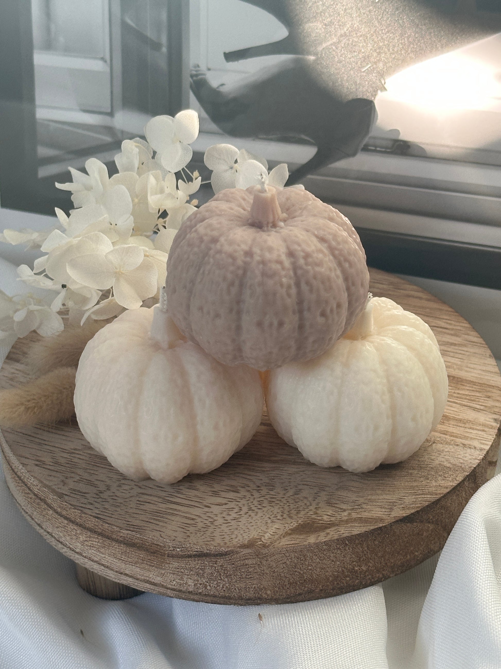 Dieses charmante handgefertigte Kürbis-Kerzen bringt dezente Eleganz und herbstliche Wärme in Ihr Zuhause. Die Kerzen zeichnen sich durch ihre zarte, weiße oder taupe Farbe und die fein strukturierte Oberfläche aus, die an gehäkelte Kürbisse erinnert. Jede Kerze ist in einer unterschiedlichen Größe gestaltet, was dem Set einen besonderen Reiz verleiht und für eine harmonische Dekoration sorgt. Ob einzeln oder zusammen arrangiert, diese Kerzen sind ideal für eine gemütliche Herbstdekoration und schaffen eine einladende Atmosphäre. Perfekt als Geschenk oder als stilvolles Detail für Dein eigenes Heim.