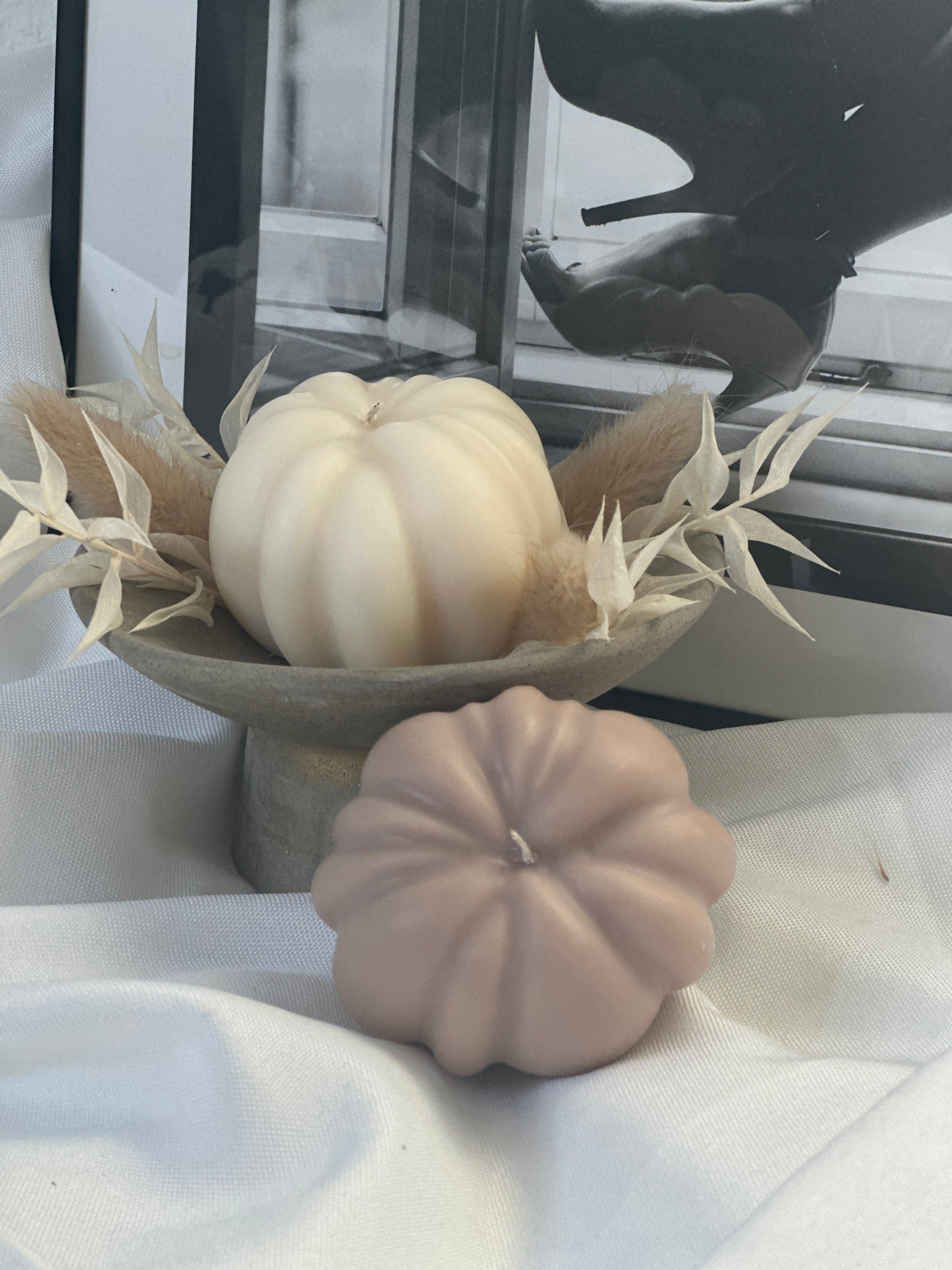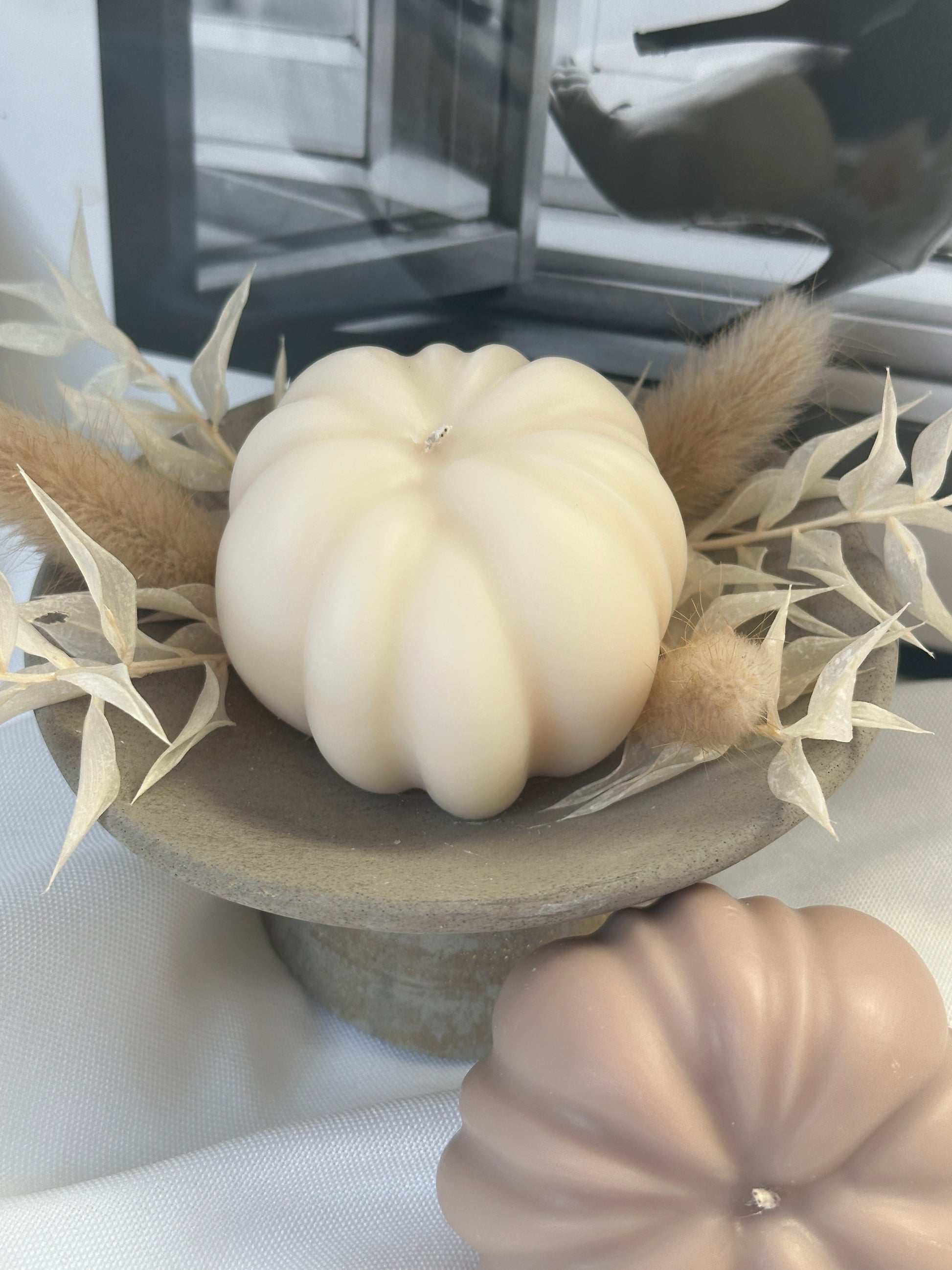 Diese handgefertigten Kürbis-Kerzen vereinen herbstliche Atmosphäre und stilvolles Design in einem. In natürlichen Taupe- und Weiß-Tönen gehalten, sind sie perfekte Dekoelemente für die Herbst-Saison. Die Kerzen bestehen aus hochwertigem Wachs und zeichnen sich durch ihre detailgetreue Kürbisform aus. Ob auf dem Esstisch, im Wohnzimmer oder als besonderes Highlight in der Halloween-Dekoration – diese Kerzen sorgen für ein gemütliches, warmes Ambiente. Ideal auch als Geschenk oder kleines Mitbringsel für Herbstliebhaber.