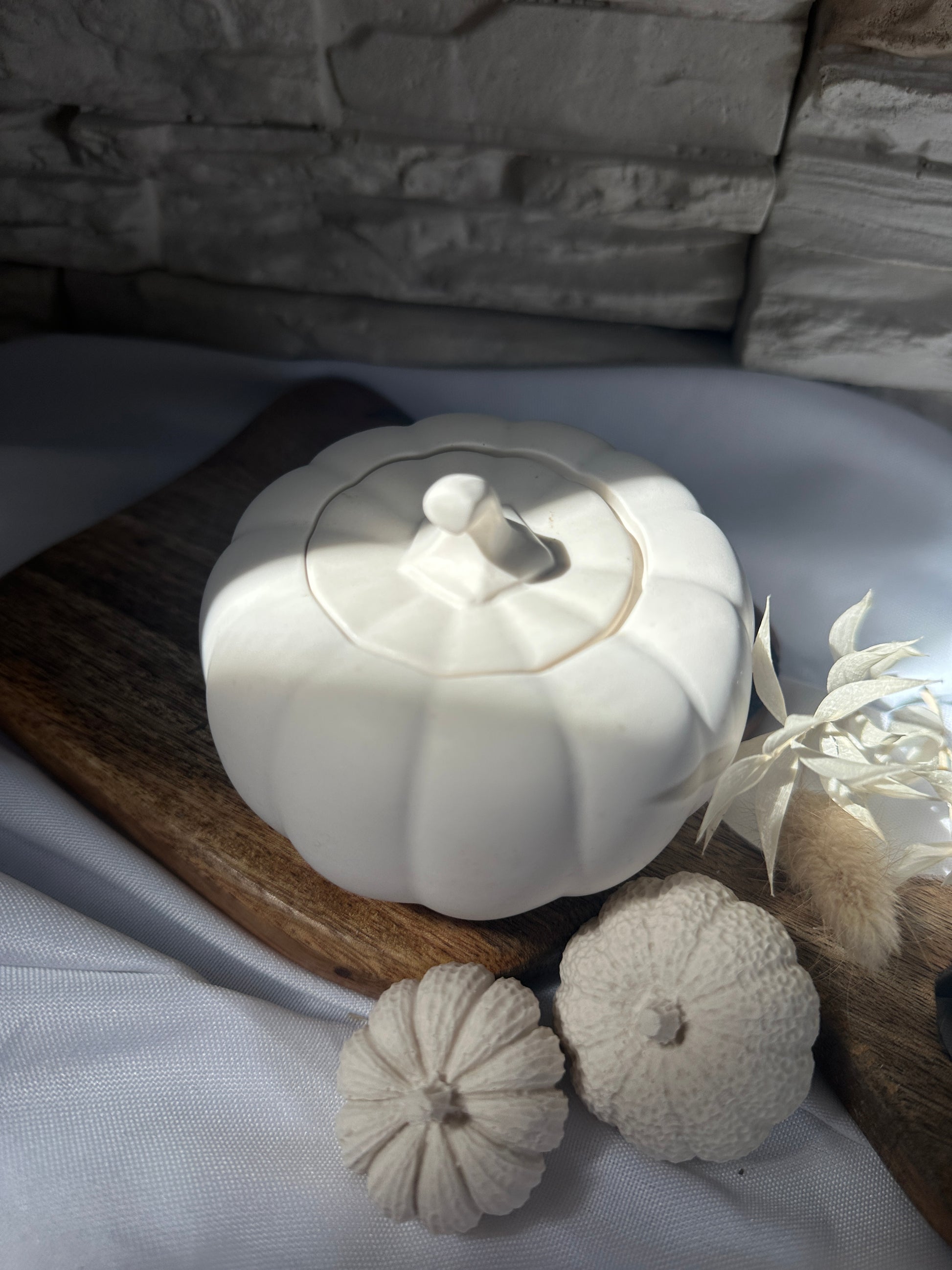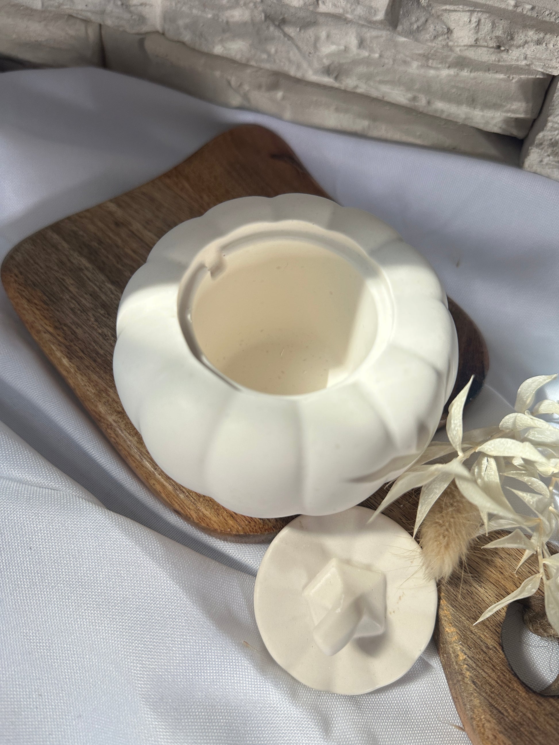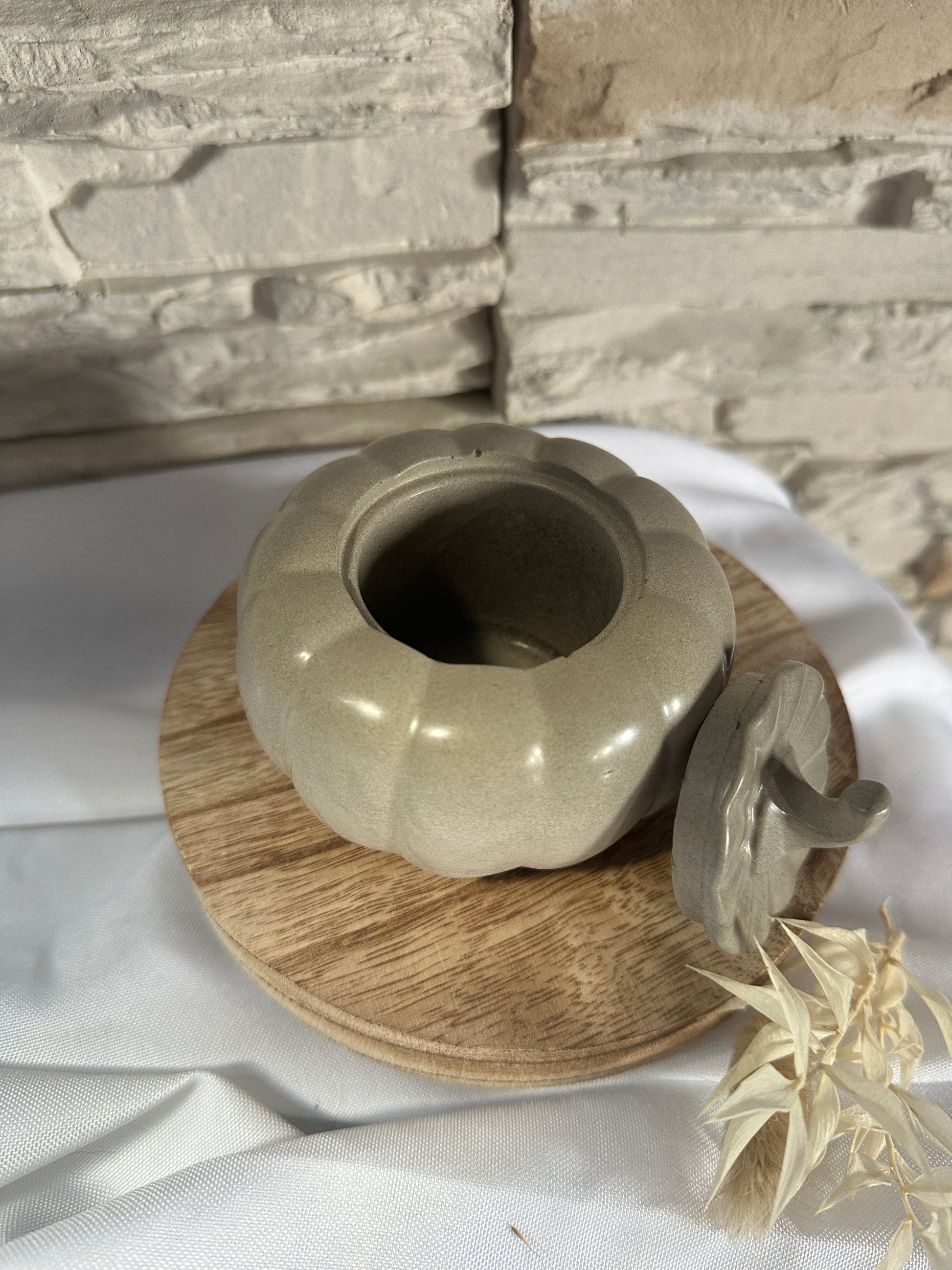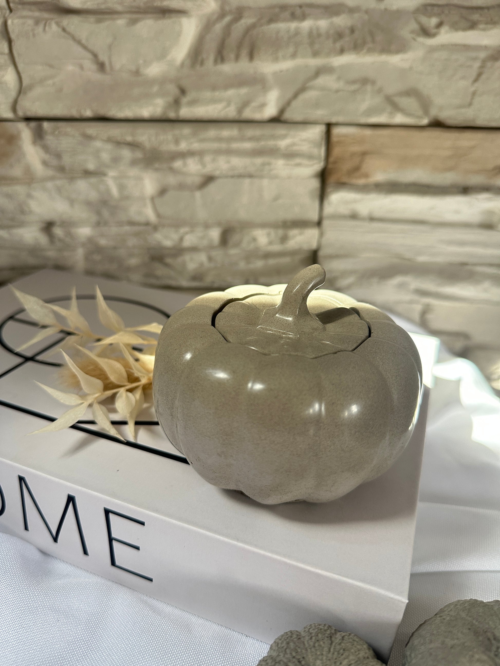 Diese charmante Aufbewahrung in Form eines Kürbisses ist ein echter Blickfang und zugleich praktisch. Mit ihrem abnehmbaren Deckel bietet sie Platz für kleine Schätze wie Schmuck, Teelichter, Süßigkeiten oder andere Kleinigkeiten.