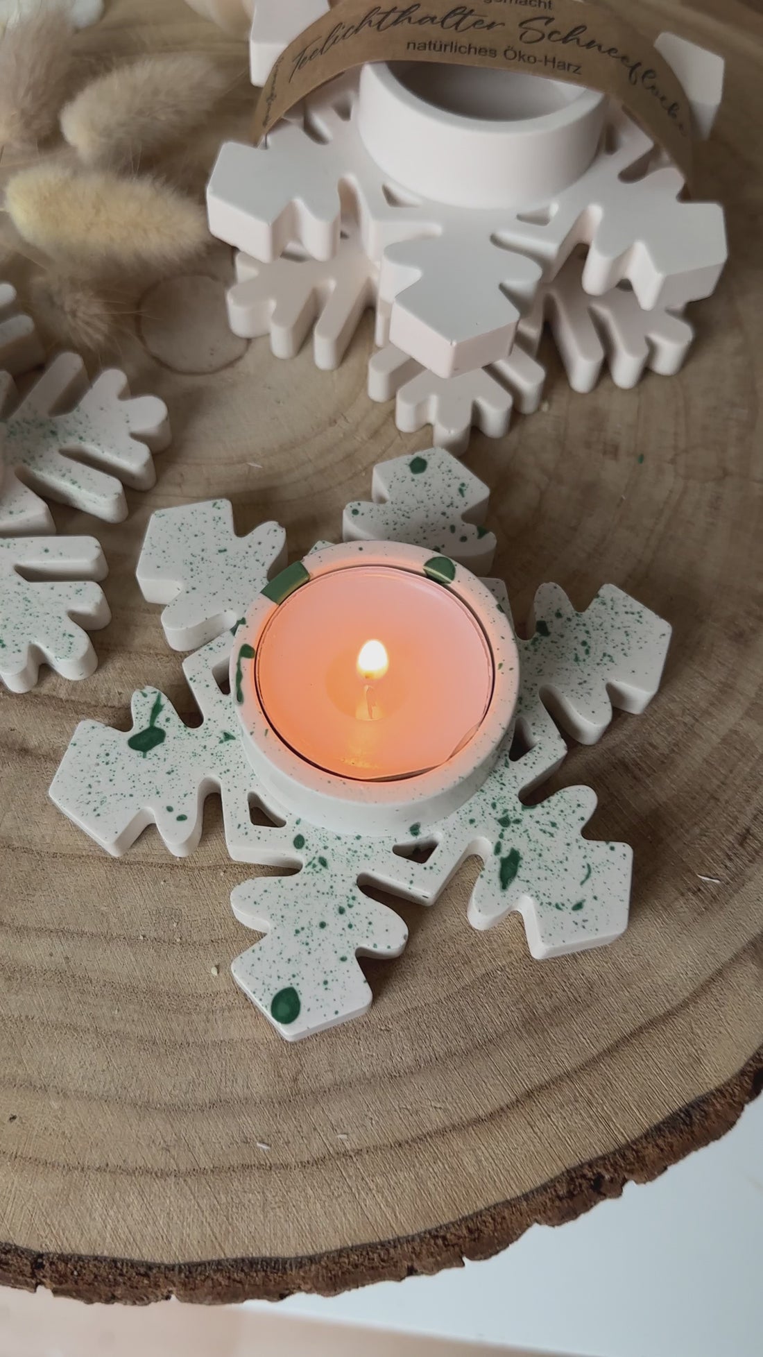 Dieses handgefertigte 2er-Set Teelichthalter in Form von Schneeflocken bringt eine winterliche und gemütliche Atmosphäre in Dein Zuhause. Gefertigt aus hochwertigem, nachhaltigem Öko-Harz, sind die Halter robust und langlebig. Sie können zwischen zwei Designs wählen: schlichte Vollfarbe für einen eleganten Look oder eine Variante mit modernen, farbigen Spritzern, die einen verspielten Akzent setzen.